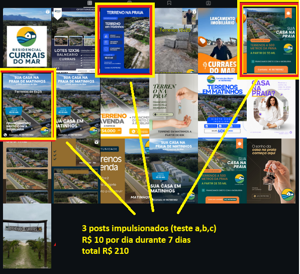 Cada postagem impulsionando R$ 10 por dia