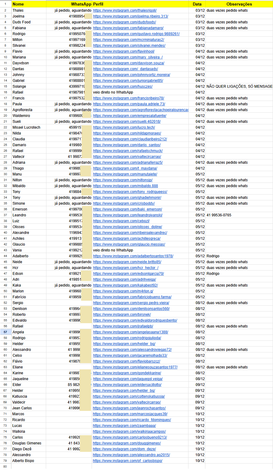 Pedimos o WhatsApp de todos os leads